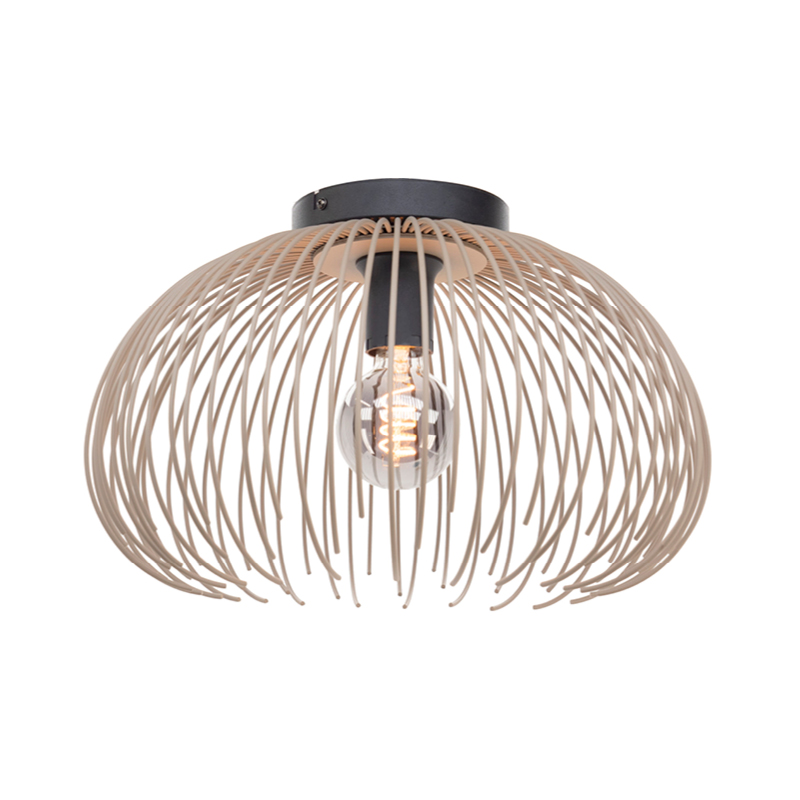 De Alhabia plafondlamp ø 38 cm straalt sfeer en karakter uit dankzij de metalen spijlen in een zandkleur. Deze speelse, open structuur geeft de lamp een unieke en gezellige uitstraling en maakt een echte blikvanger in de woonkamer, slaapkamer of hal.
