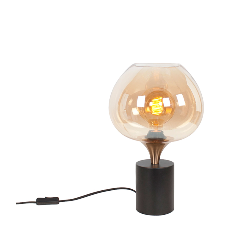 - Bronskleurige detail, zwarte voet en amber kleurige glazen kap