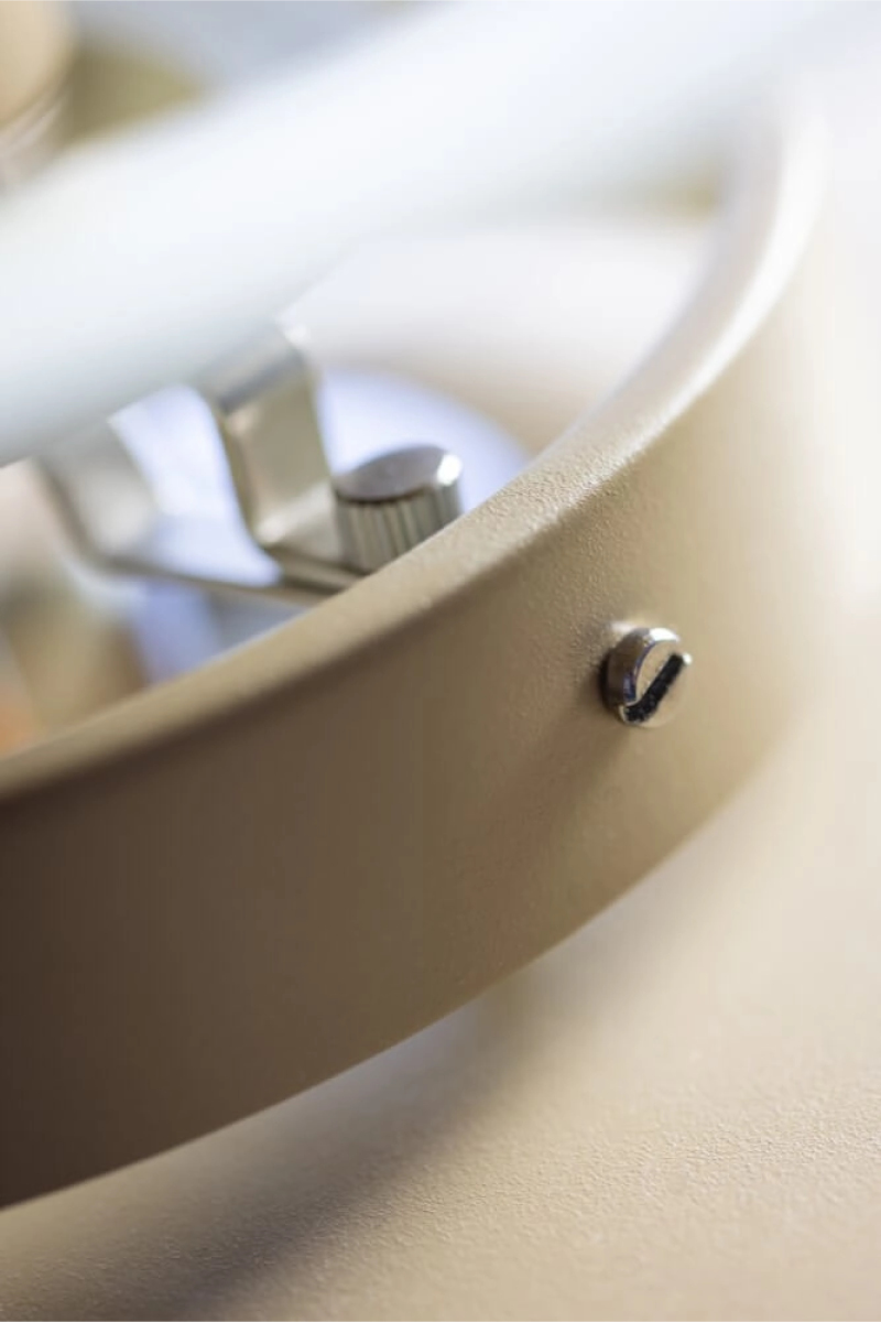 De Patty hanglamp heeft de kleur beige. De hanglamp heeft een doorsnee van 50 cm en een snoerlengte van 150 cm. De lamp is in hoogte verstelbaar.